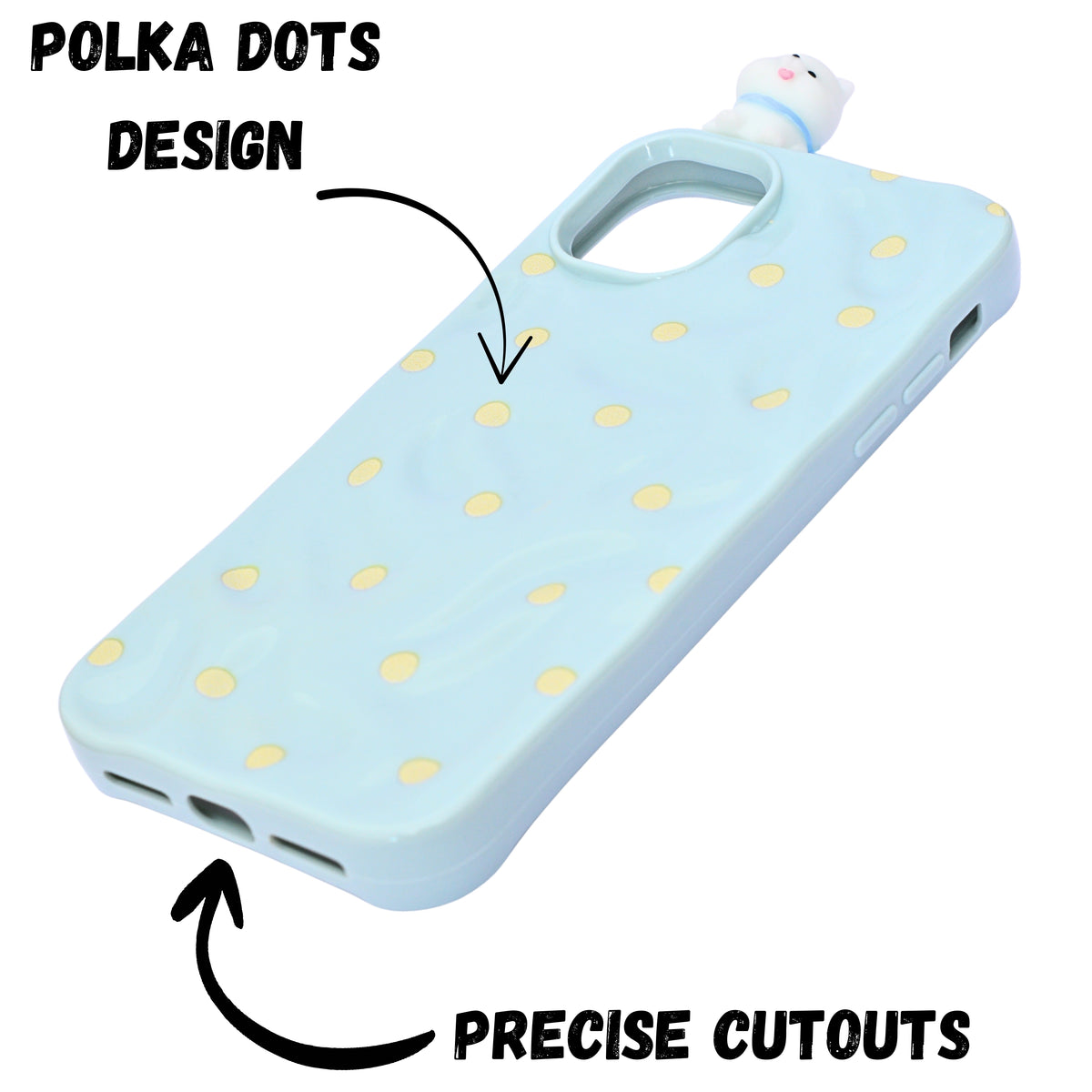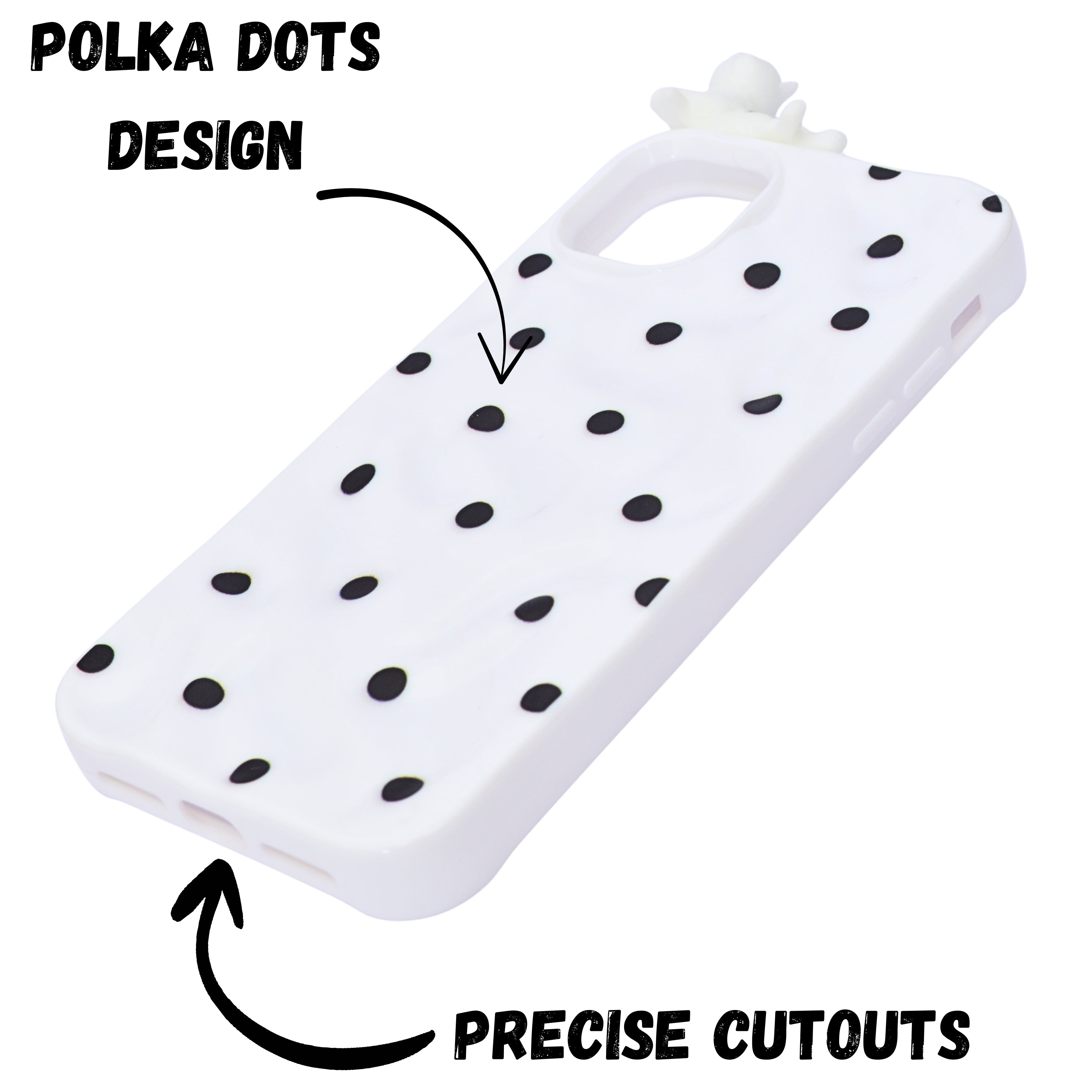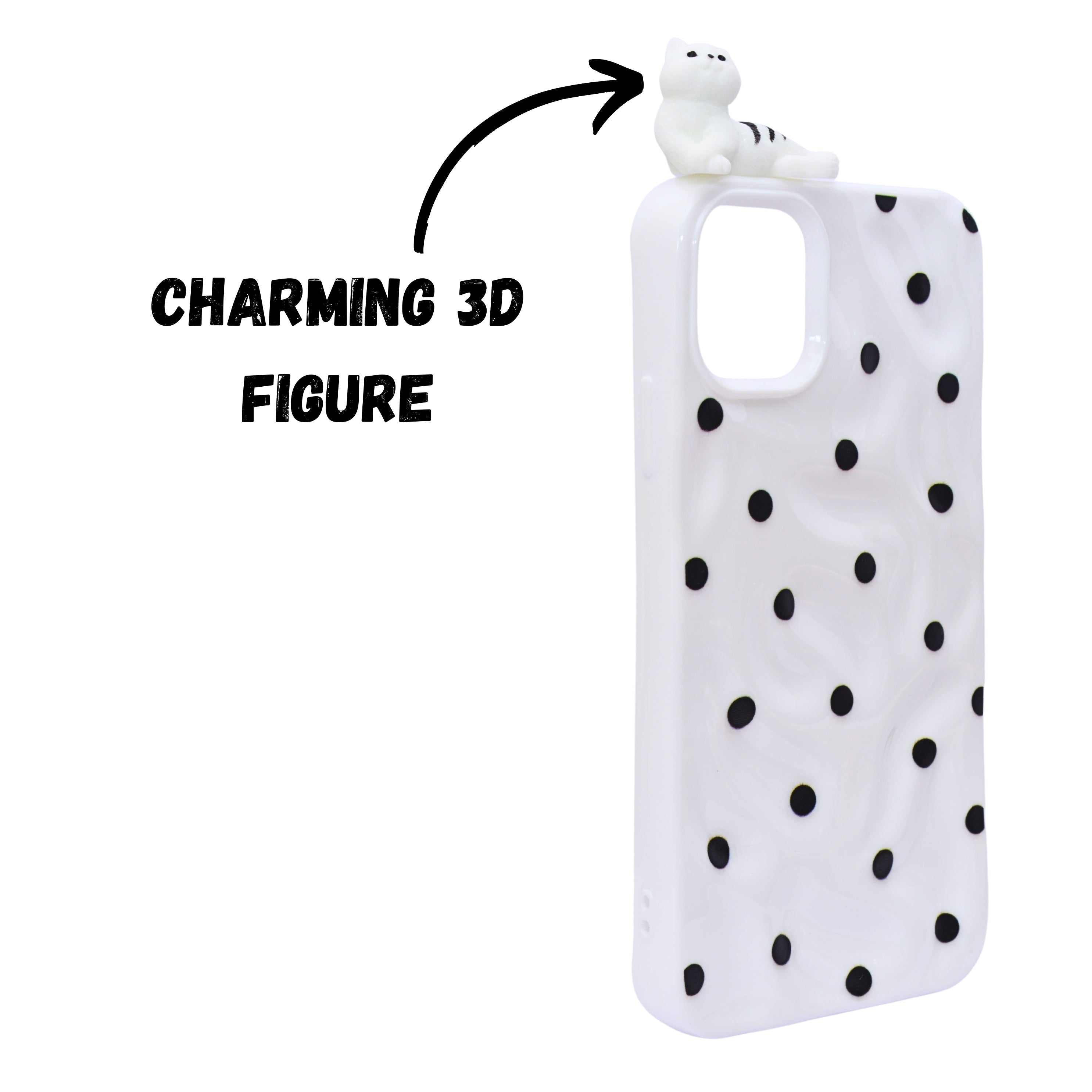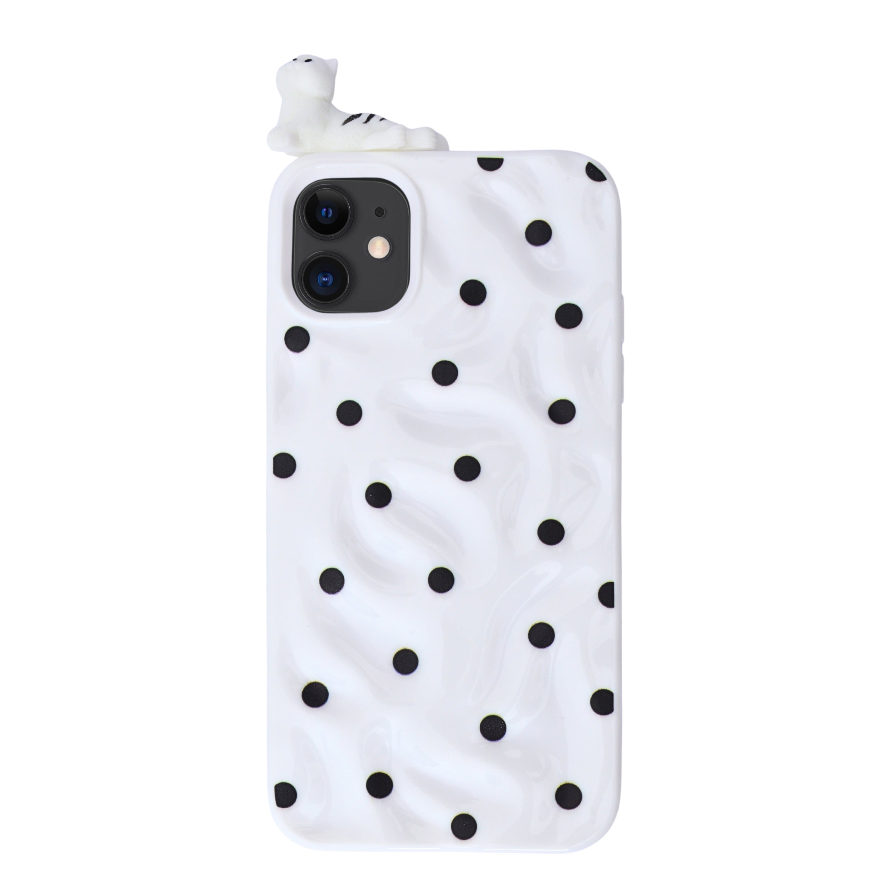 Add a fun and charming touch to your phone with our 3D Cartoon Polka Dot Phone Case. Featuring a soft silicone build with raised polka dot texture and cute 3D character accents like a cat and moon, this case blends playful aesthetics with reliable protection. The lightweight yet durable design safeguards your device from daily bumps and scratches while offering a comfortable grip. Perfect for those who love unique and eye-catching styles!