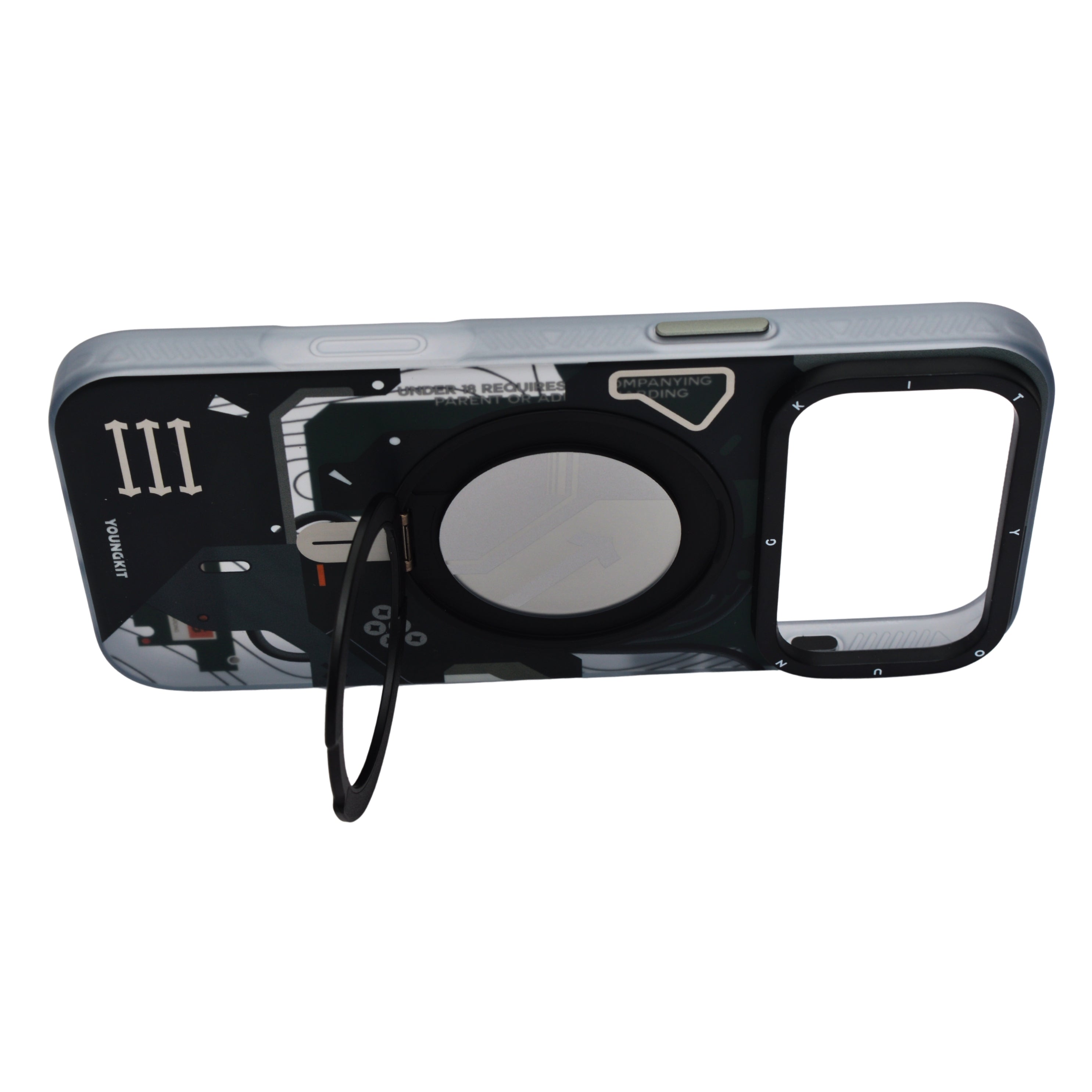 Add futuristic flair and unmatched convenience to your iPhone with the Futuristic Tech Armor MagSafe Case with 360° Rotatable Kickstand. Designed with a bold, sci-fi inspired pattern, this case not only offers superior drop and scratch protection but also features a built-in 360° rotatable kickstand for hands-free viewing at any angle. MagSafe compatibility ensures effortless charging while keeping your phone stylish and secure.