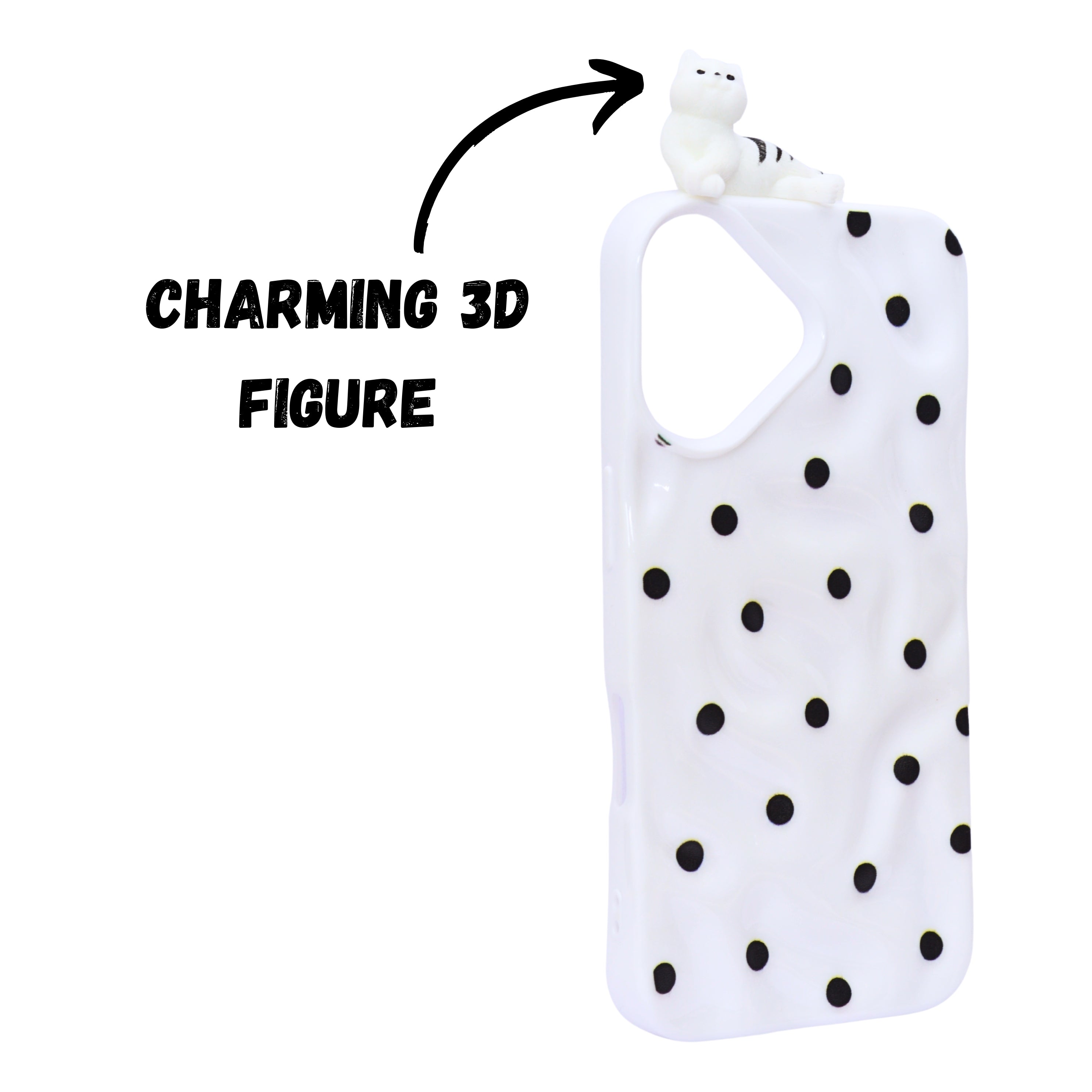 Add a fun and charming touch to your phone with our 3D Cartoon Polka Dot Phone Case. Featuring a soft silicone build with raised polka dot texture and cute 3D character accents like a cat and moon, this case blends playful aesthetics with reliable protection. The lightweight yet durable design safeguards your device from daily bumps and scratches while offering a comfortable grip. Perfect for those who love unique and eye-catching styles!