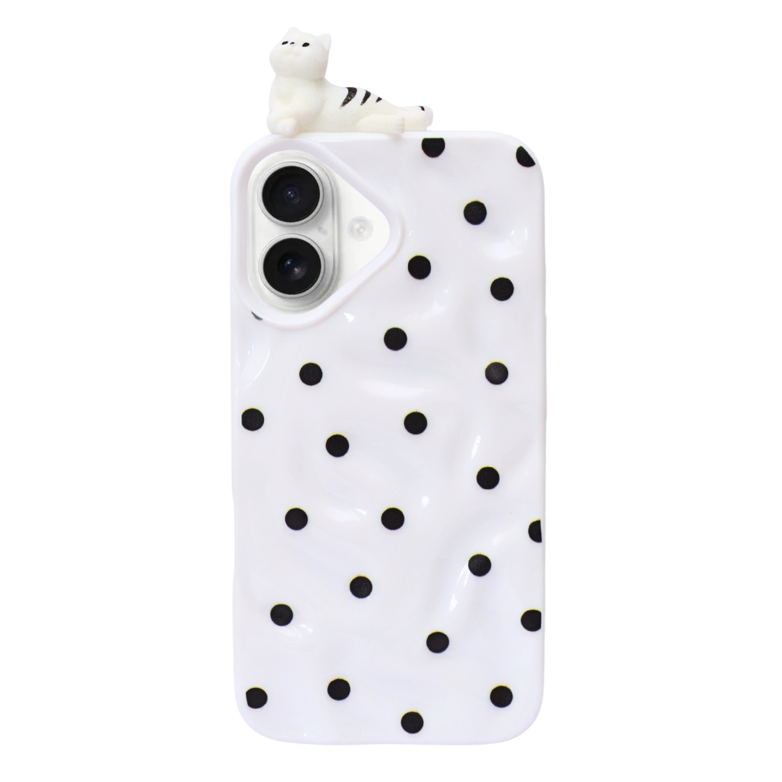 Add a fun and charming touch to your phone with our 3D Cartoon Polka Dot Phone Case. Featuring a soft silicone build with raised polka dot texture and cute 3D character accents like a cat and moon, this case blends playful aesthetics with reliable protection. The lightweight yet durable design safeguards your device from daily bumps and scratches while offering a comfortable grip. Perfect for those who love unique and eye-catching styles!